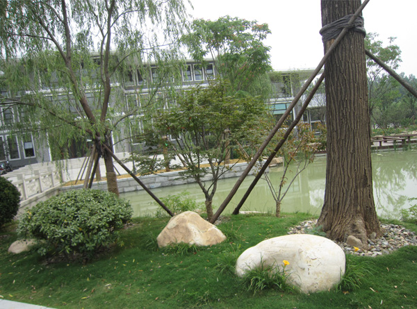該項目位于河南省周口市沈丘縣,是由翰高置業(yè)開發(fā)的一個高端商務會所園林綠化工程。整體設計靈感融南北方園林特色于一體,園內(nèi)以曲徑通幽的道路,古典特色的木亭及蜿蜒曲折的流水為主景,搭配錯落有致的植物,特別引入具有熱帶氣息的棕櫚類植物,豐富植物品類,突出南方特色。該園以水面為中心,四周散布建筑,構(gòu)成一個個景點,幾個景點圍合而成景區(qū),使整個園林景觀綿延連續(xù)。